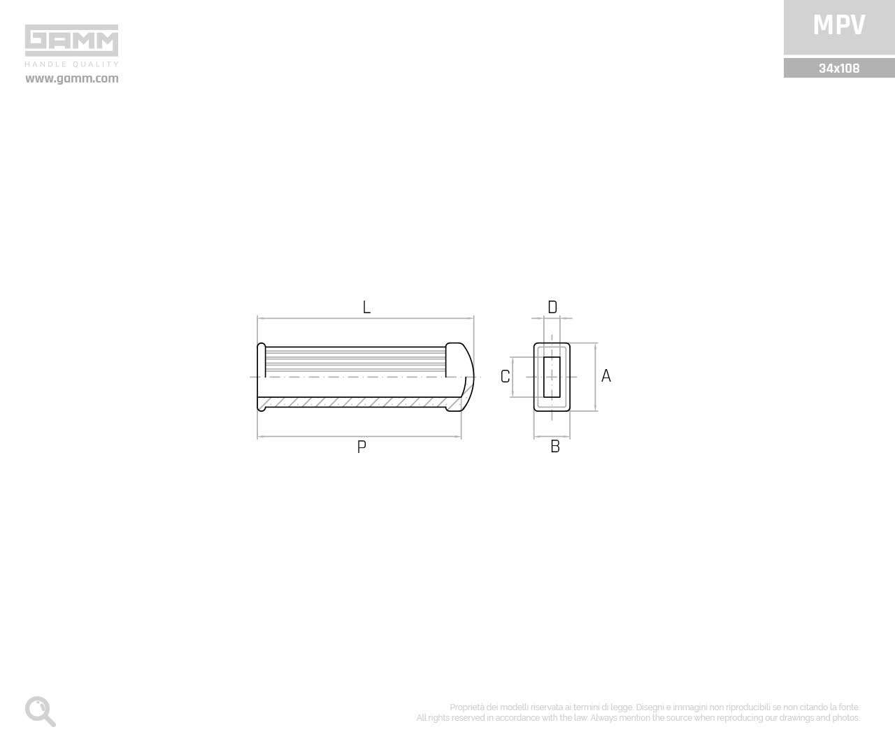 MPV 34x108 prodotto manopole in PVC GAMM